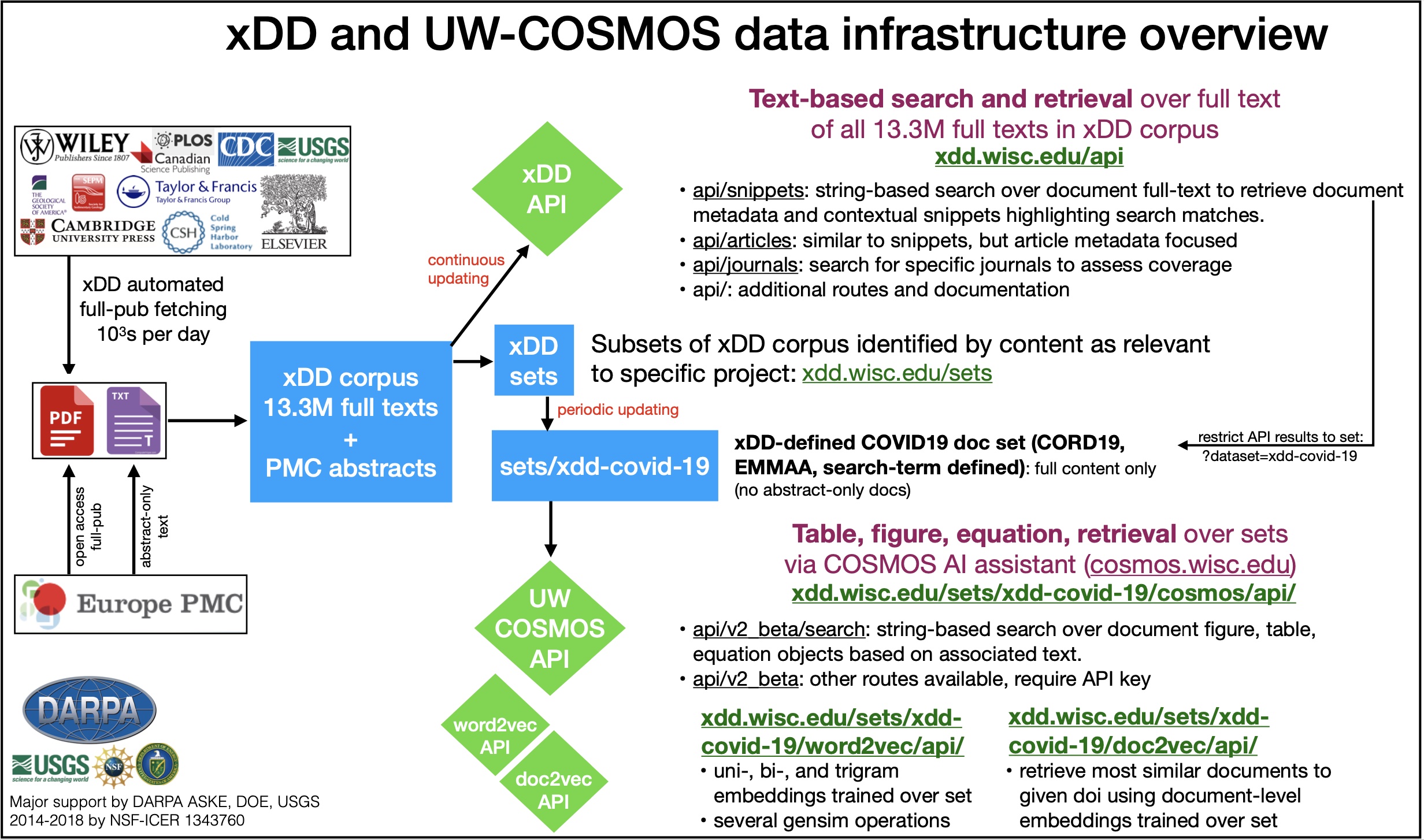 Text, figures, tables from 18M+ scholarly articles (PDF/PubMed) | Natural language processing (entity tagging, parsing); OCR for scanned docs; custom text-mining applications via an API |